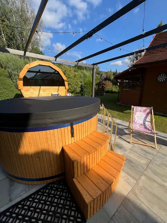 W Lawendowej Przystani czeka na Ciebie strefa relaksu — prywatna sauna oraz balia z gorącą wodą. To idealny sposób na odprężenie po dniu spędzonym w górach Brennej. Zanurz się w cieple i spokoju, otoczony naturą i zapachem lawendy.