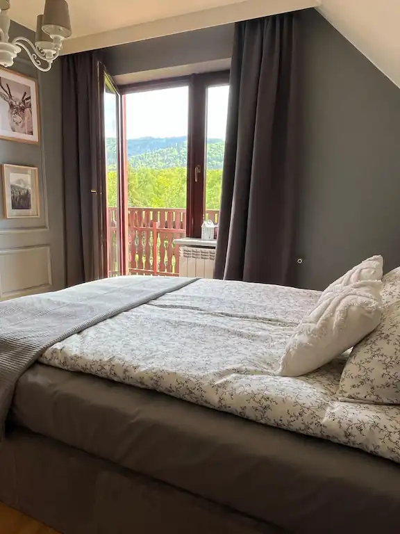 Przytulny pokój gościnny w domku Lawendowa Przystań w Brennie – idealny na nocleg w górach